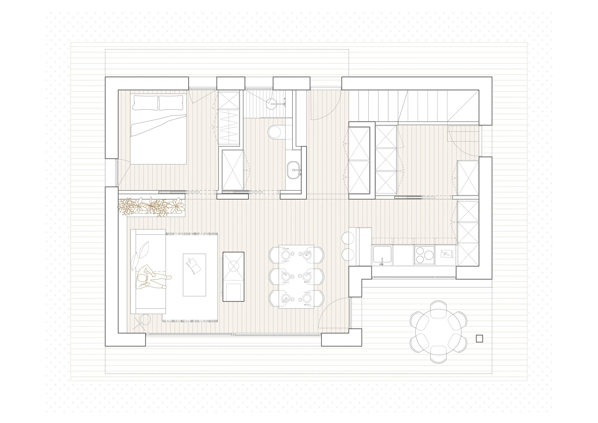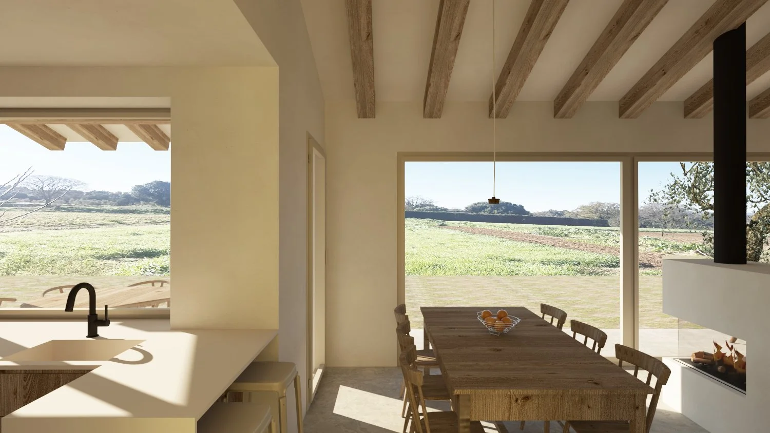 La Lídia vol fer-se una casa al costat dels seus germans, junt als camps que el seu pare sempre ha cultivat. Vol una casa petita d’uns 100m2, però que contingui tot el que desitja: un espai comú ampli amb una cuina mínima i una habitació en planta primera on poder-se relaxar.